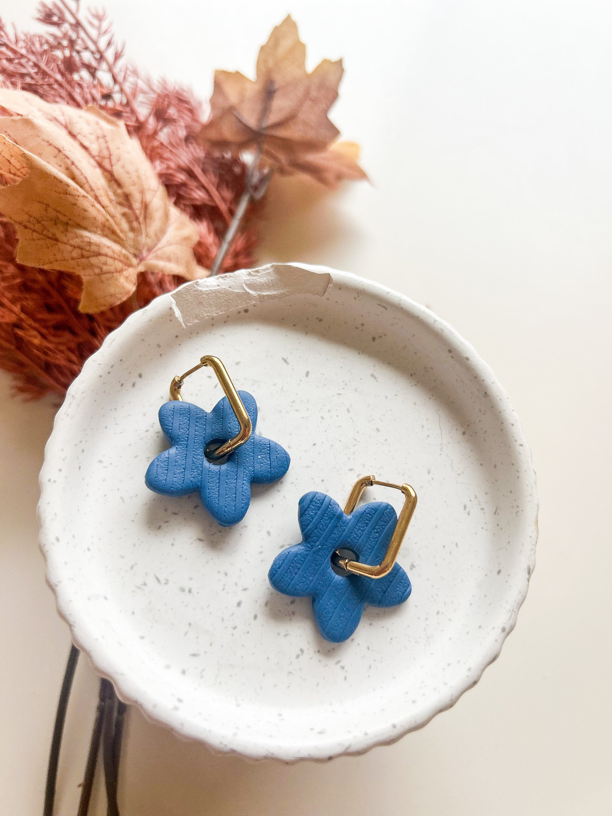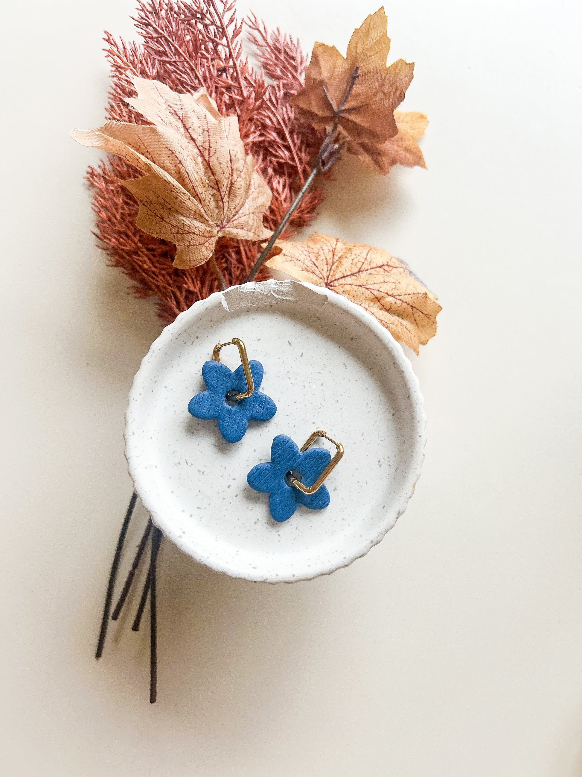 item: Polymer clay flower earring with gold plated brass metal hoop. Textured