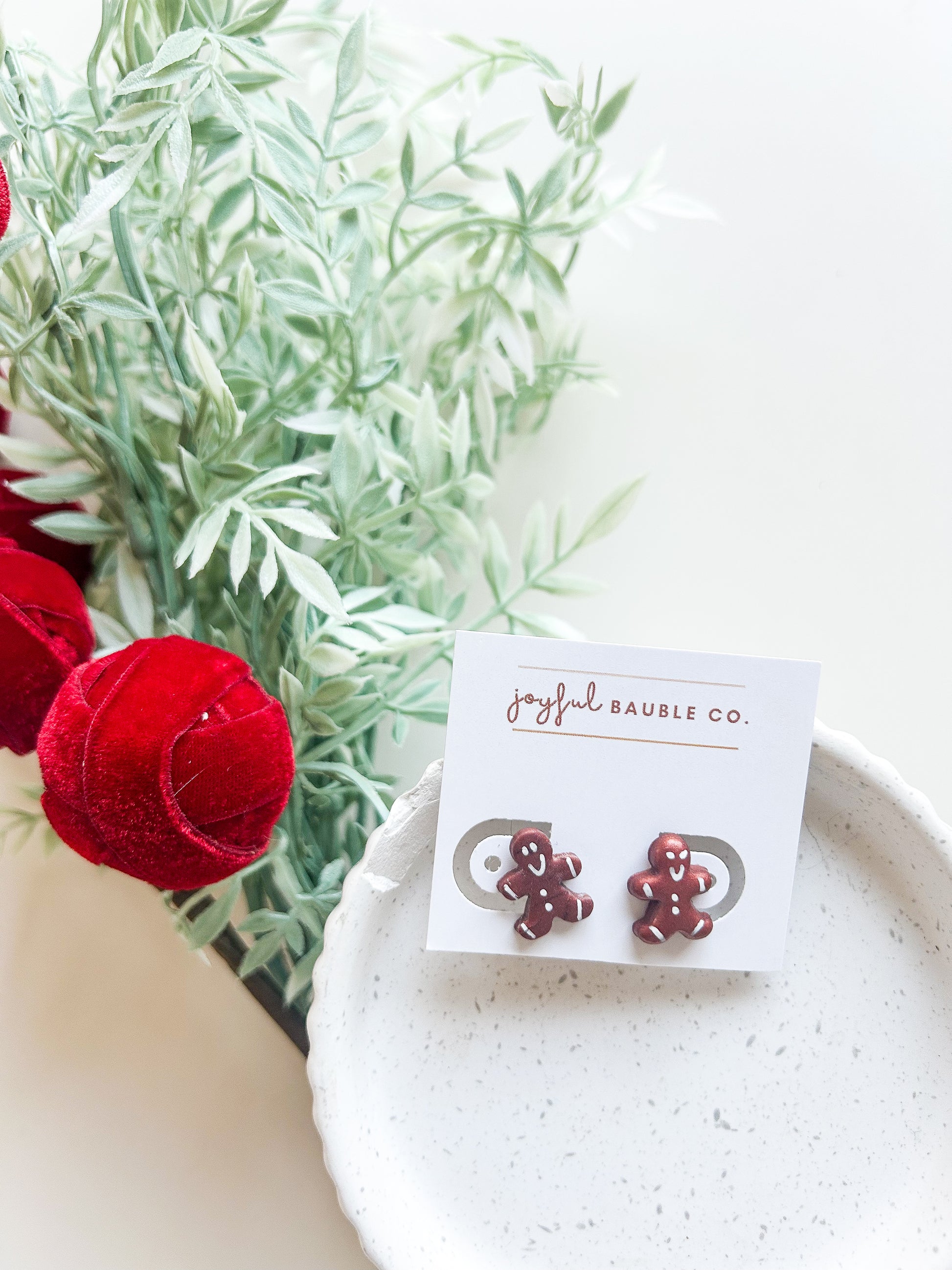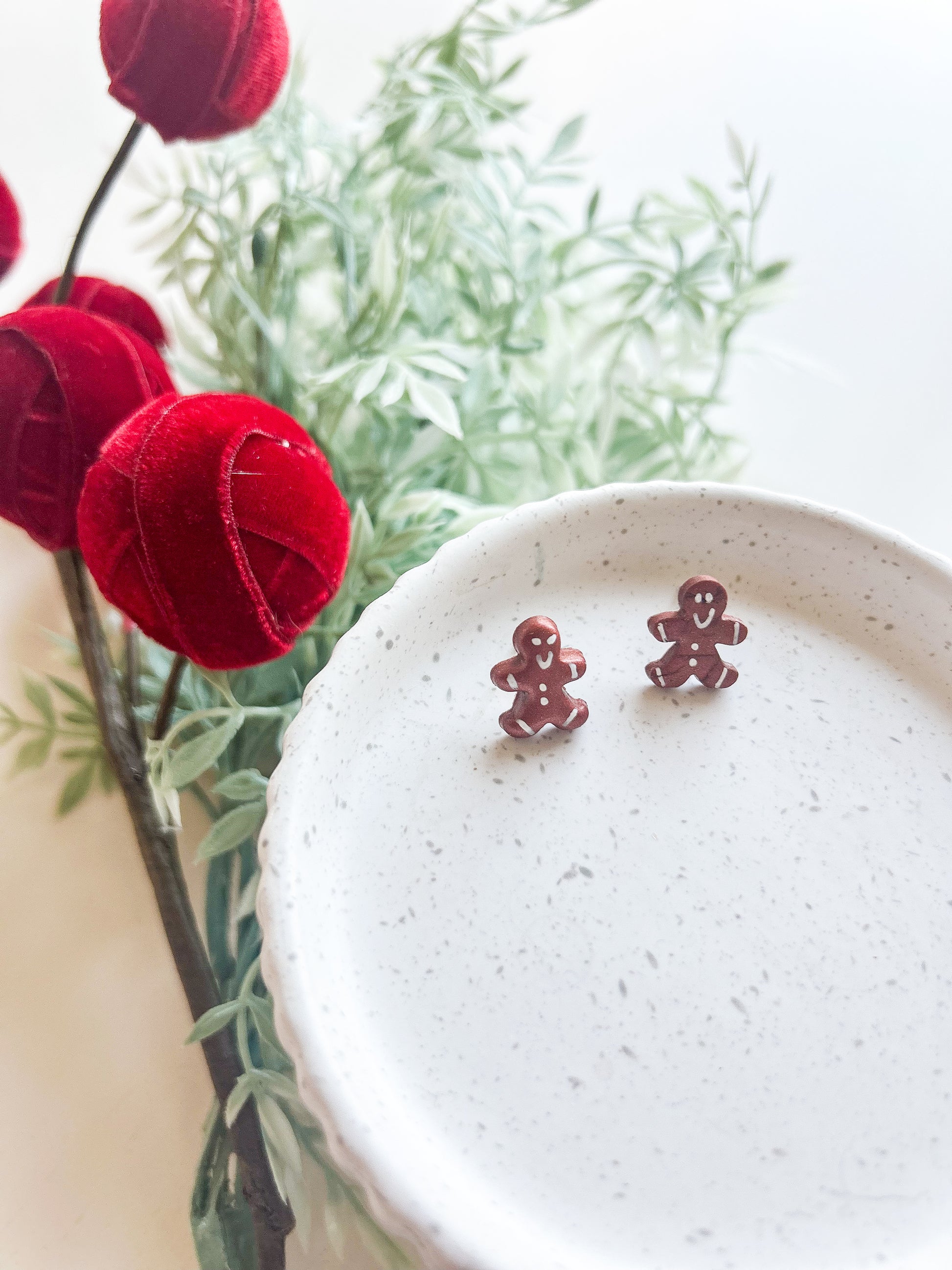 Item : Polymer clay gingerbread stud. hand painted gold details
