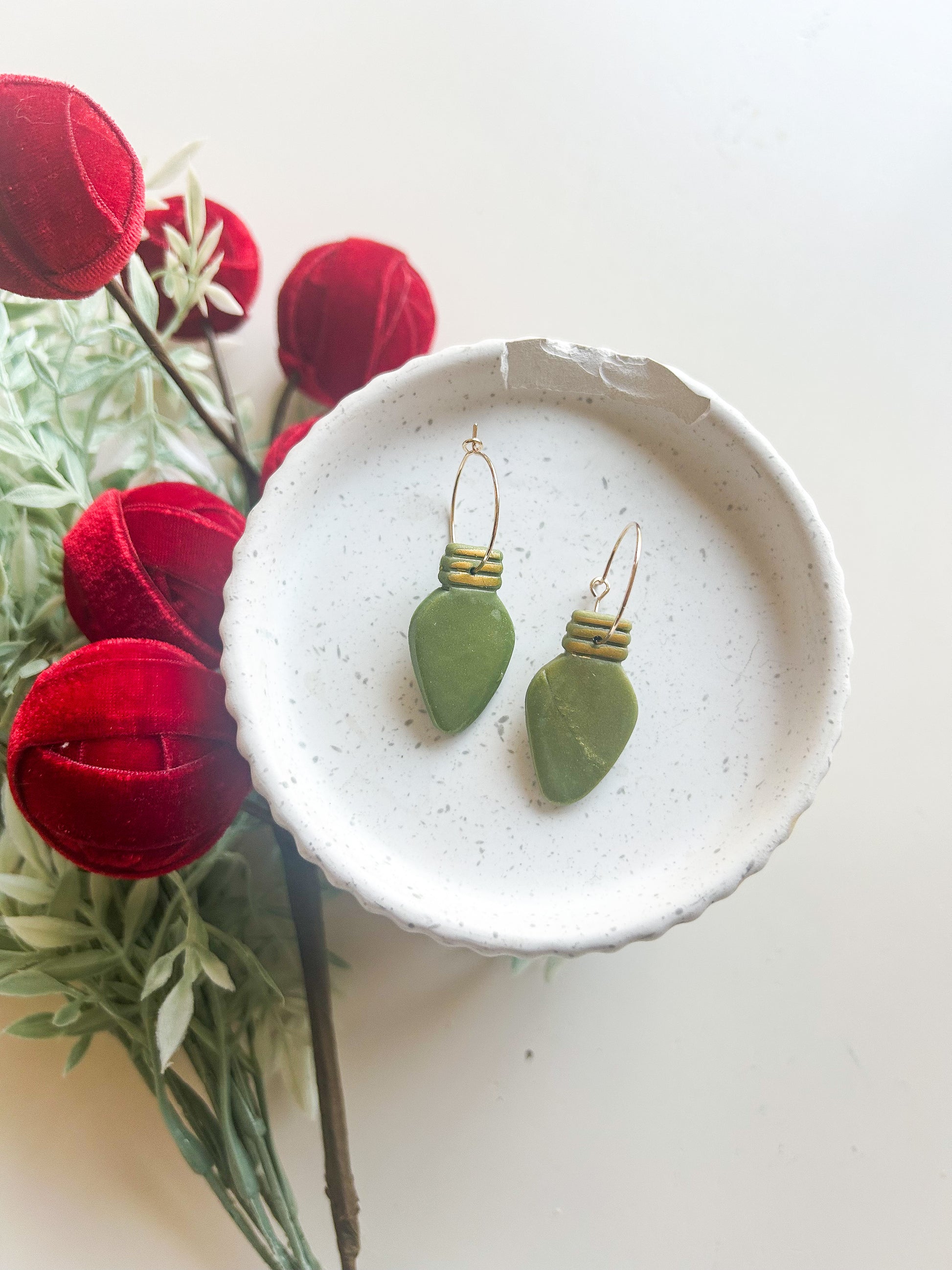 Item : Polymer clay light bulb on brass hoop. hand painted gold & glitter details