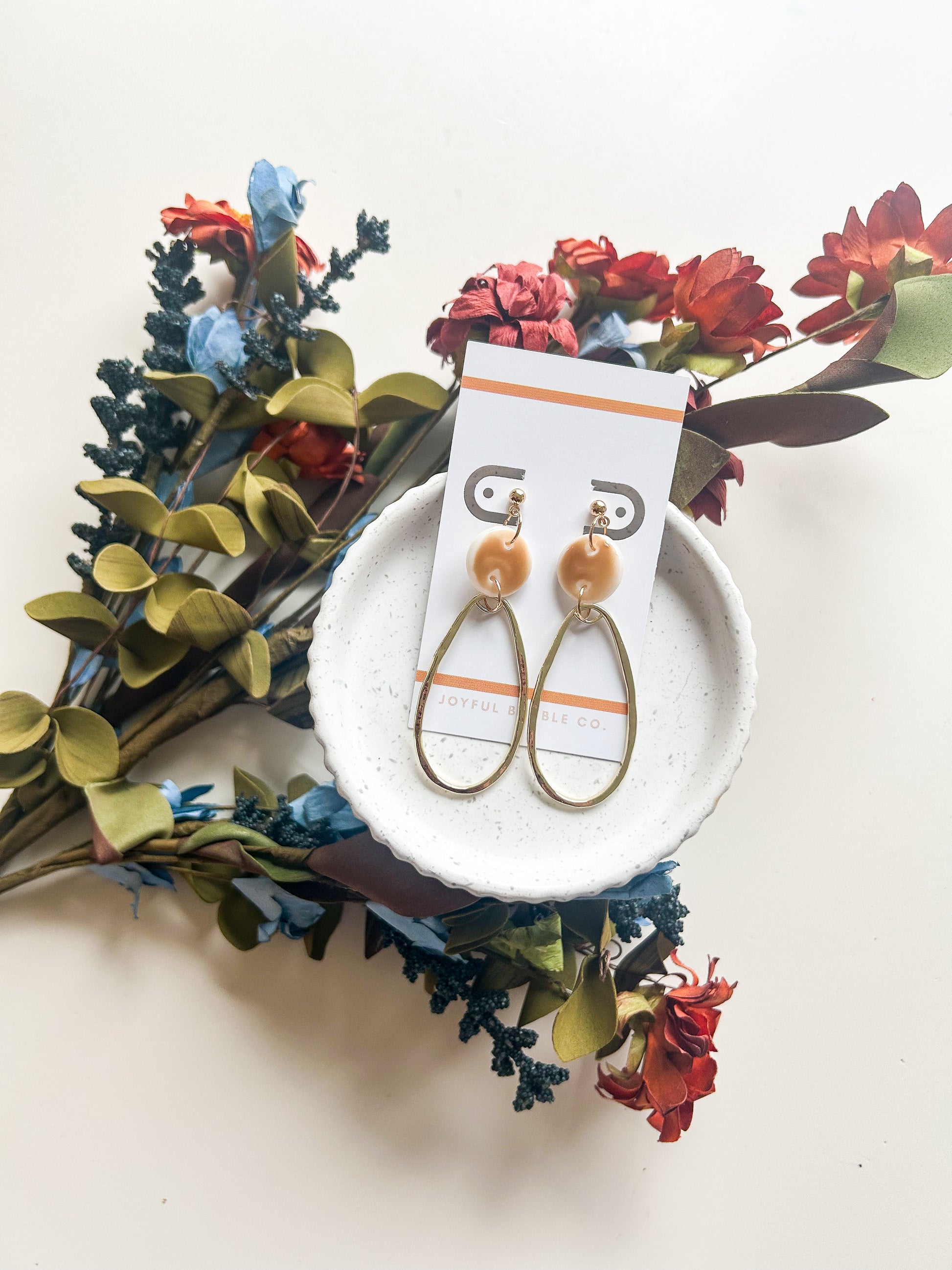 Item : Polymer clay earring with gold brass metal hoop accents.