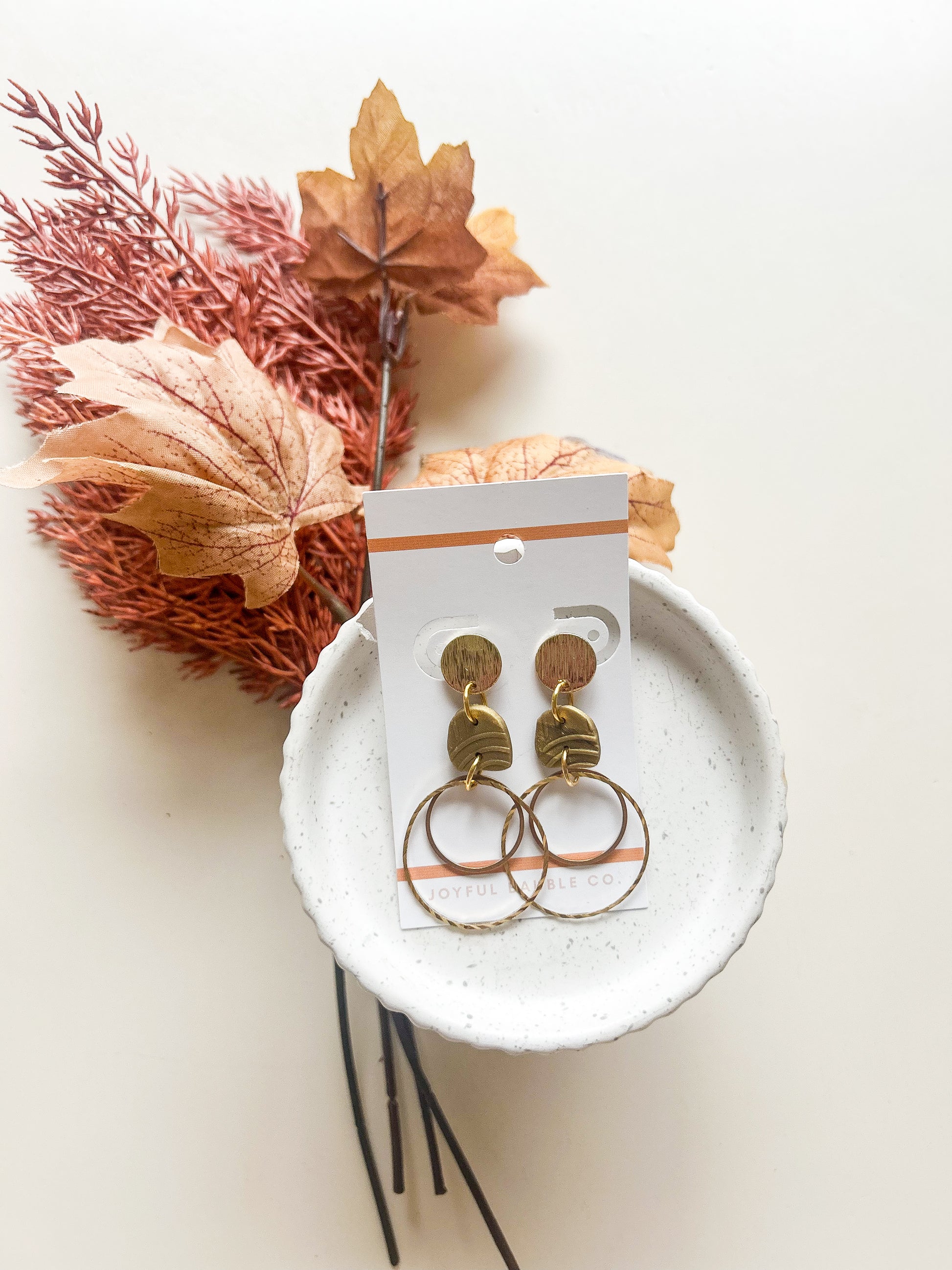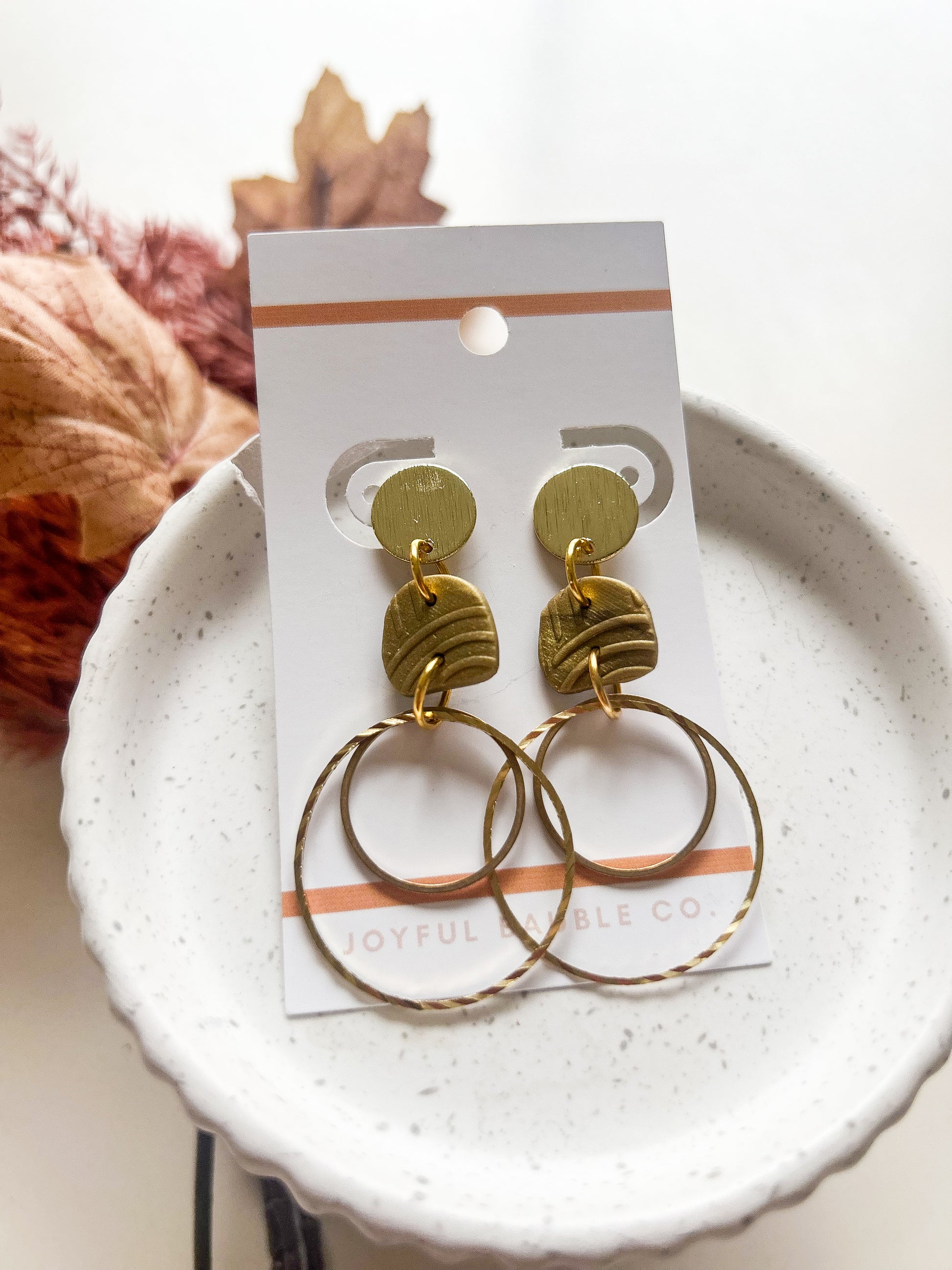 Item : Polymer clay earring with gold brass metal circle accents. textured